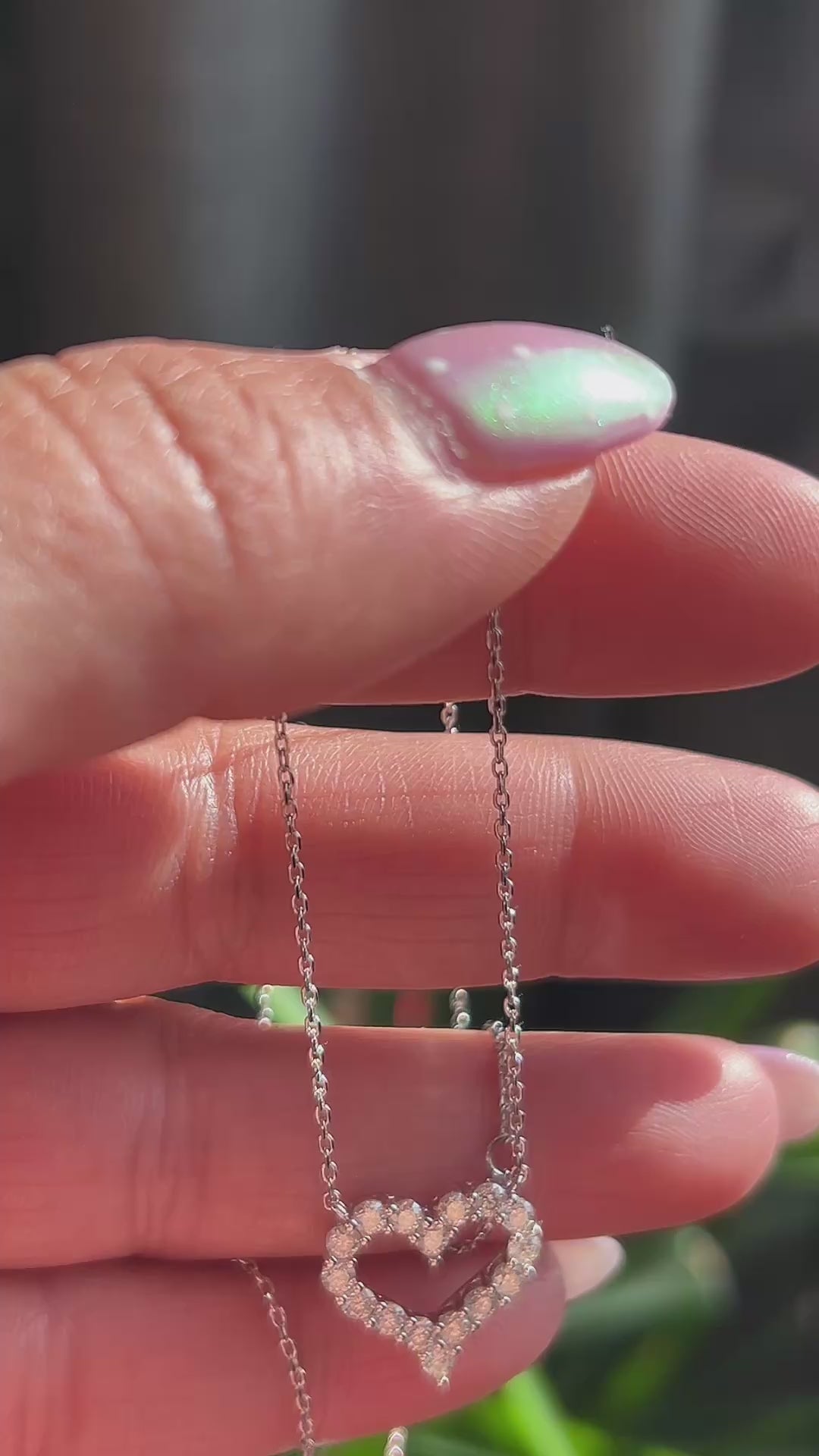 Sterling Silver Moissanite Open Heart Necklace – Adjustable 16"–18"